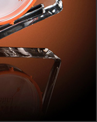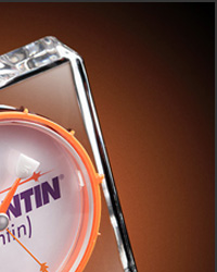 Neurotonin custom designed Lucite clock with branded face and custom pill-shaped hands.